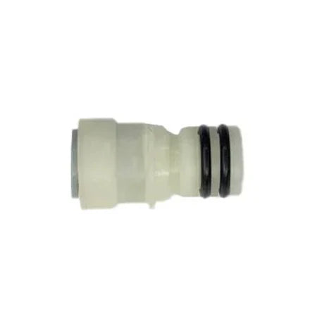 The Aquatec Reducer Adapter 3/8" QC offers Quad Plug In Port Fittings and a Sliding Clip for easy and secure installation in pumps with a 3/4" port opening. The Quick Disconnect style O-ringed fitting allows for fast and simple hose removal, perfect for quick winterizing and draining of your system.