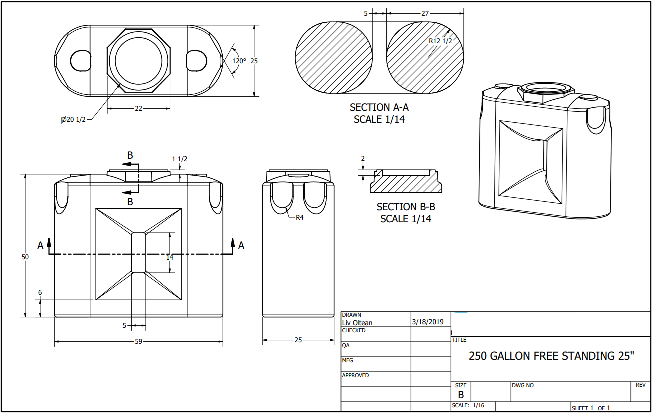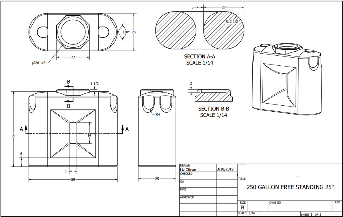 Constructed with durable, rotationally molded polyethylene resin, ensuring resistance to cracks, chips, and ruptures.