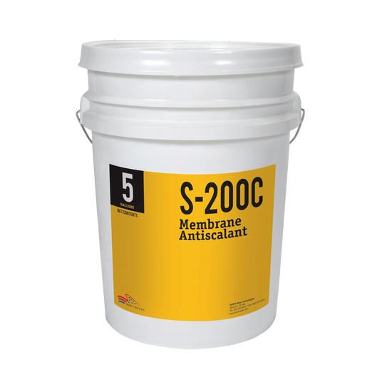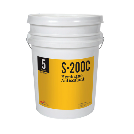 AXEON® S-200 Antiscalant is an effective antiscalant, specially formulated for feed water with the highest levels of metal oxides, silica and scale–forming minerals. It is effective over a wide range of concentrations and does not flocculate dissolved polymers such as residual coagulants, iron or aluminum–rich silica. It inhibits polymerization of reactive silica and disperses colloidal (non–reactive) silica. This product is effective in reducing the operating and capital costs of major manufacturer's reverse osmosis, nanofiltration and ultrafiltration systems.